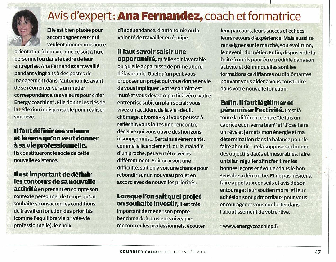 Réussir sa reconversion (interview) – Juillet 2010