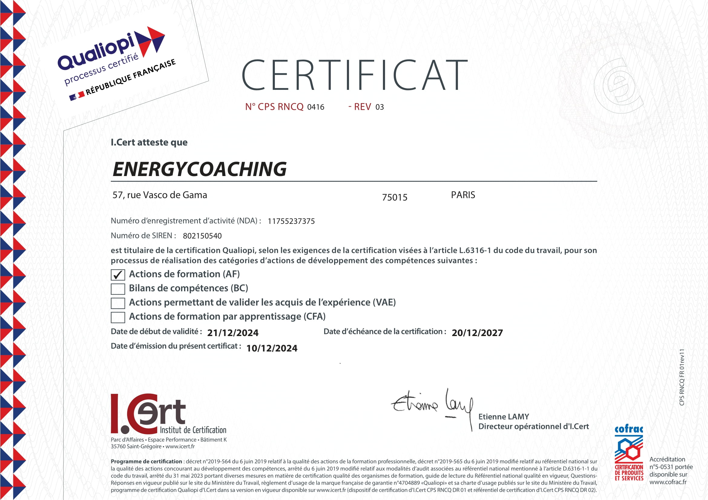La certification qualité a été délivrée au titre de la catégorie d’action suivante : ACTIONS DE FORMATION.